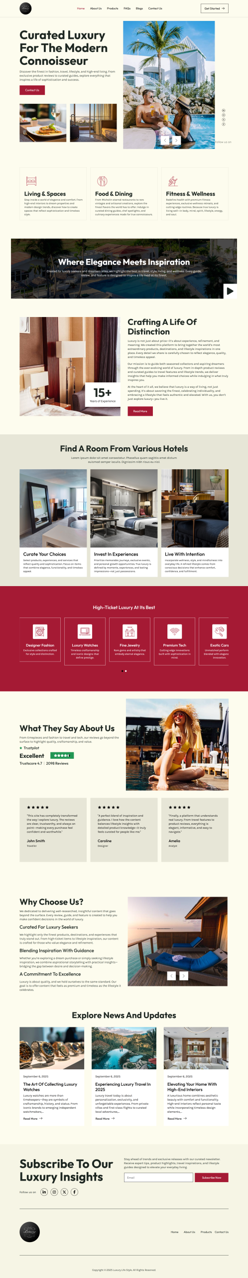 The Luxury Lifestyle website is structured to highlight high-ticket items, comparisons, and lifestyle content. Product reviews, best-of guides, travel features, and trend updates drive both organic search traffic and affiliate conversions.